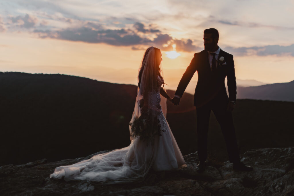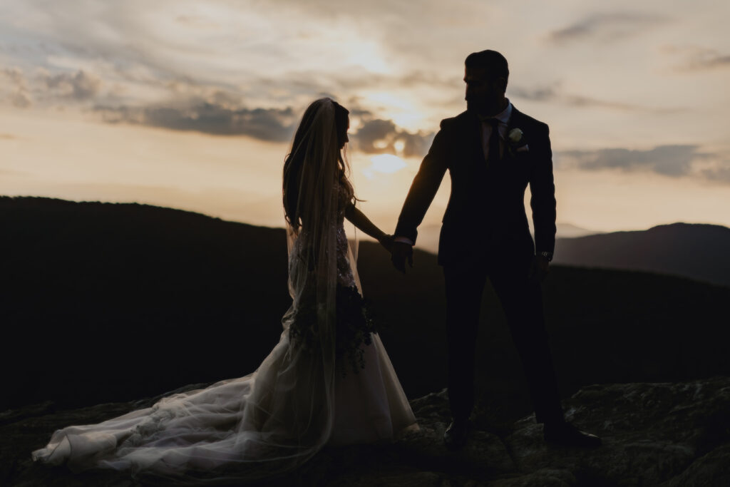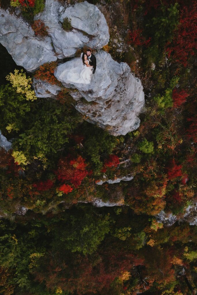 Are you looking for Elopement Photography in Asheville that includes Drone? Check out these post sunset shots from the air on the edge of the mountain in the Linville Gorge Wilderness!