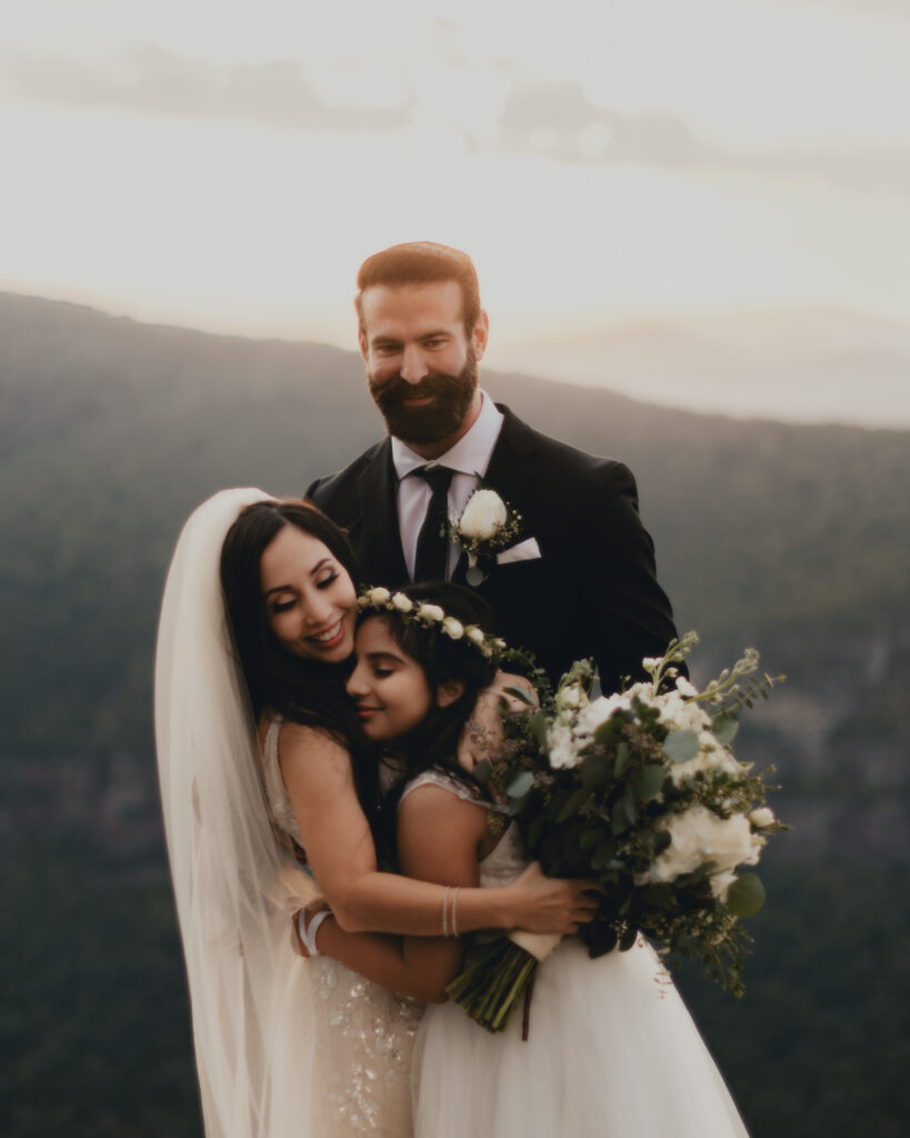 Carolina and John wanted to say their vows on a mountaintop. We headed out as a team, with an officiant from Love and Wisdom Officiants, and found one of my favorite spots in the Linville Gorge Wilderness at The Chimney’s. Just an hour and a half drive from Downtown Asheville. Western North Carolina is full of countless natural spots to elope and this one has got to be at the top.